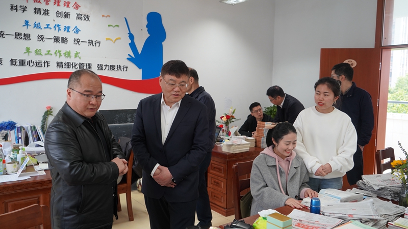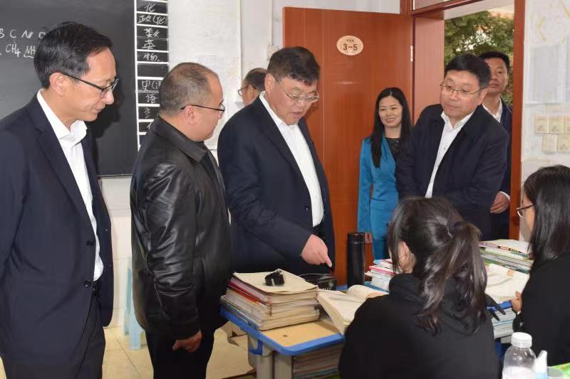 崔副厅长详细了解了学校历史沿革、办学思想、治校策略、办学成果与学位供给,参观了校史馆、图书馆,并鼓励同学们广泛阅读。崔副厅长一行还特别深入高一教师办公室、教室,与师生进行深入交谈,详细询问师生“三新”改革实施的相关情况,包括教师教材使用困惑、学生选课走班意向等。学校党委书记、校长罗爽介绍了学校的发展历程,以及学校在落实立德树人根本任务,坚持真教育理念取得的成绩;重点汇报了学校争创四川省引领性示范高中的相关情况。