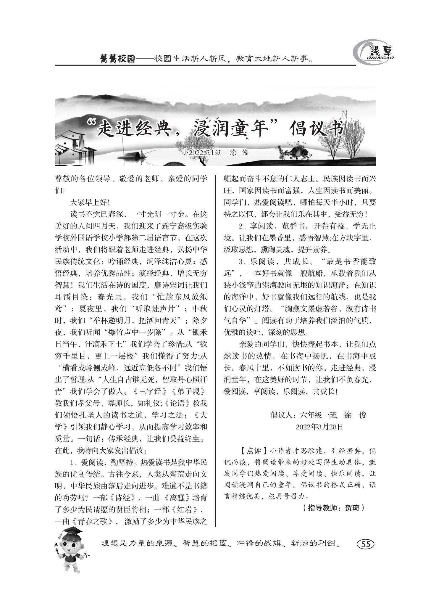 走进经典,浸润童年倡议书