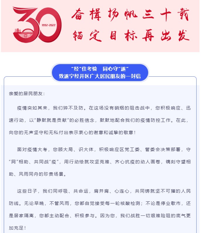 “经”住考验 同心守“遂”——致遂宁经开区广大居民朋友的一封信