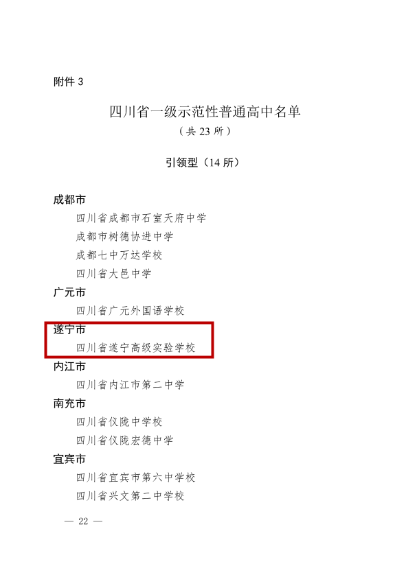 祝贺!遂宁高级实验学校成功晋级四川省一级示范性普通高中(引领型)