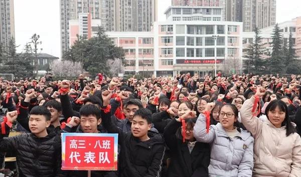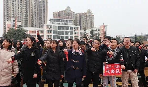 “我们,追逐人生梦想;我们,携带双亲希望;在这最后一百天,我们以青春的名义郑重宣誓:珍惜一百天,不辜负自己的人生;奋战一百天,不辜负老师和父母的期盼......我们,续写实校荣光!”会上,高三年级各班学子怀揣饱满的热情和昂扬的斗志,高举右拳,激情宣誓。他们豪情满怀,激情澎湃地高声呐喊着自己班级的口号、誓言,他们用掷地有声的誓言表达了他们决胜高考的雄心和壮志。一阵高过一阵的呐喊声响彻全场,一腔腔壮志豪言久久回荡在校园上空。