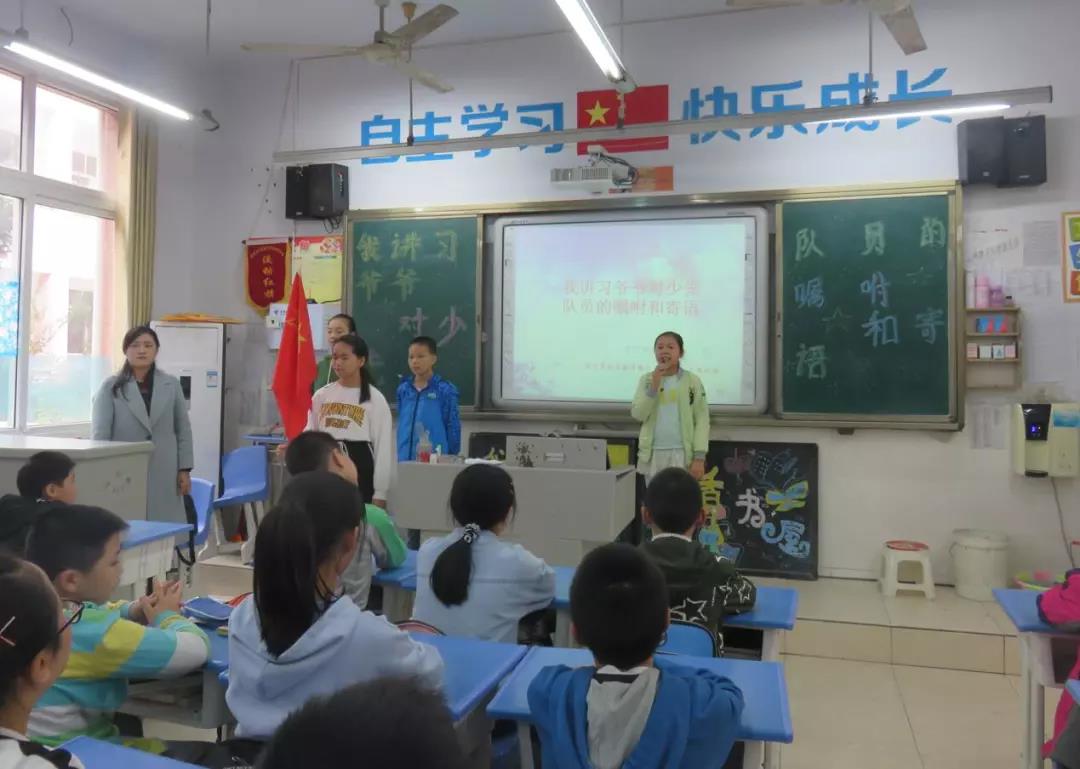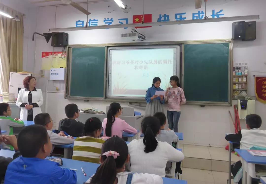 10月12日下午的少先队活动课上,全校统一开展“我讲习爷爷对少先队员的嘱托和寄语”主题队课活动。俗话说,“一年之计在于春,一日之计在于晨”。各中队还坚持“诵读经典、传承文明”的晨读活动。每天“诵读经典”结束后,由一位同学在上课前带领全体队员领读一段“习爷爷的嘱托”,队员们在“习爷爷的嘱托”的激励下开启一天的学习,小伙伴们的声音洪亮、浑身充满力量每天读完“习爷爷的嘱托”感觉更有精神了,更爱学习、爱劳动......