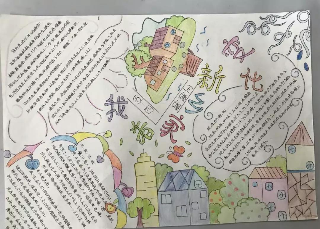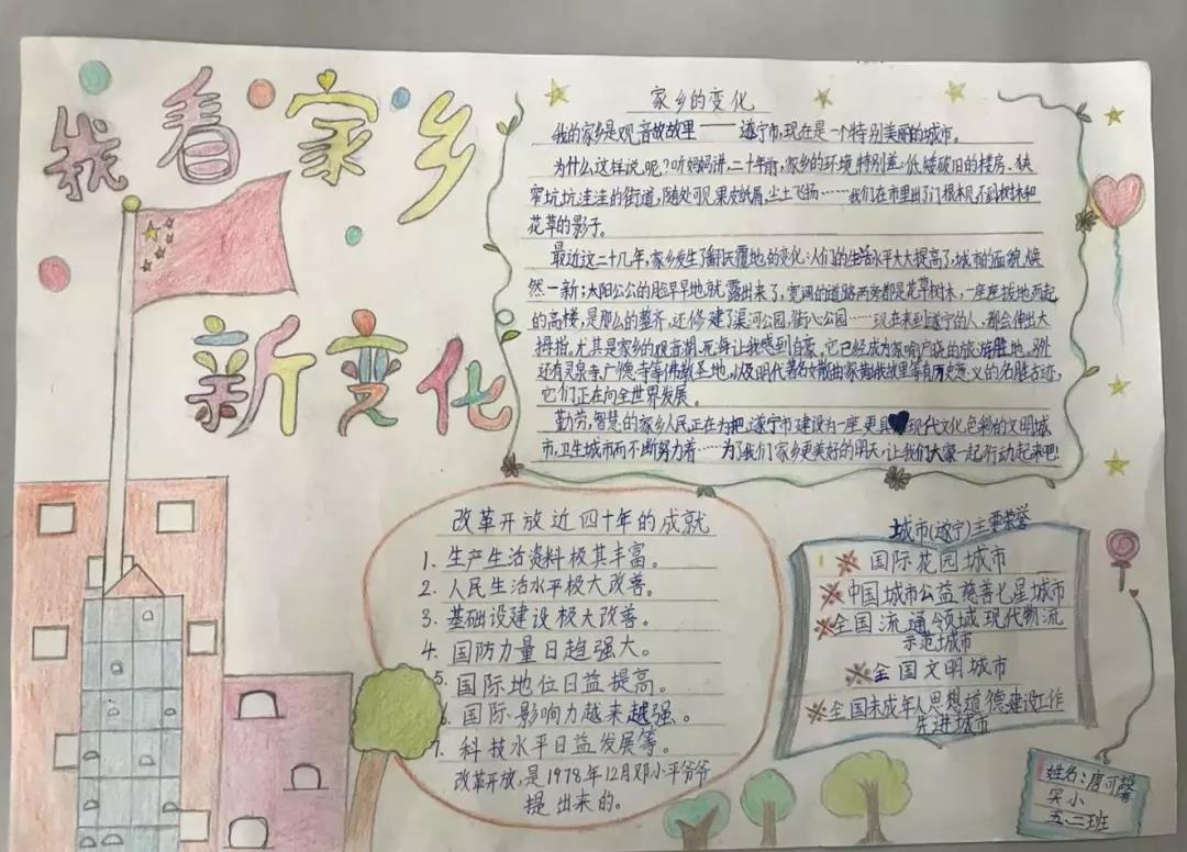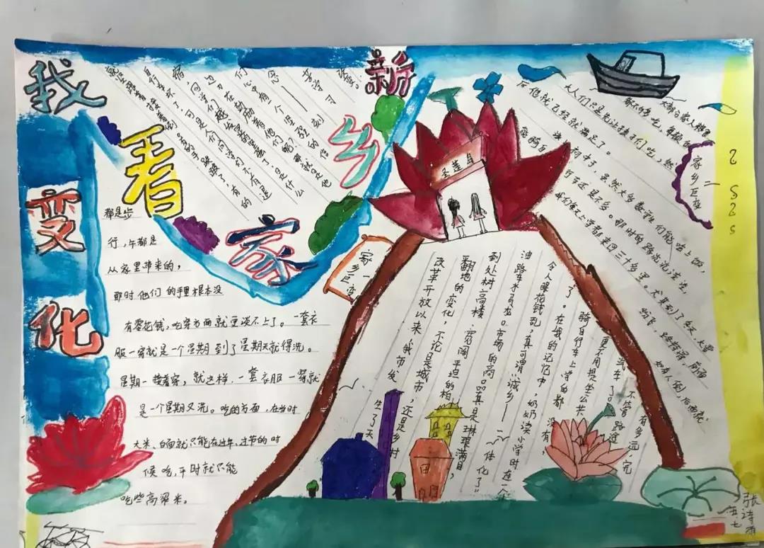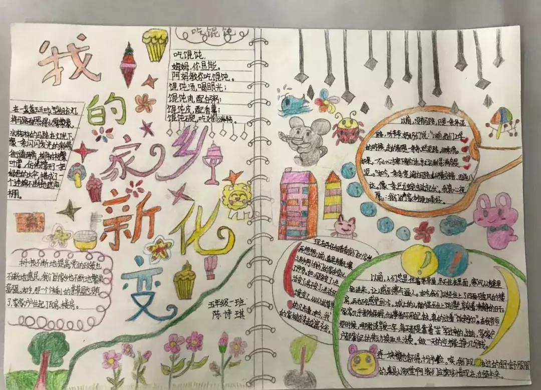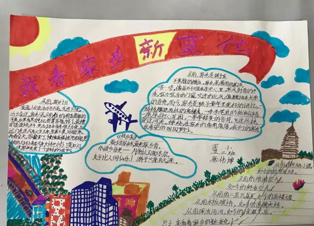 五、六年级的队员们开展了“红色基因代代传——我看家乡新变化”寻访活动。通过寻访,收集资料,队员们制作出了一幅幅精美的手抄报。