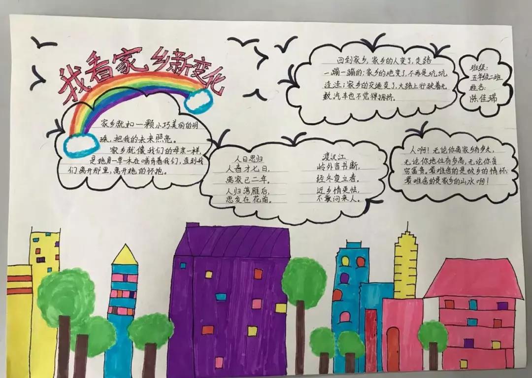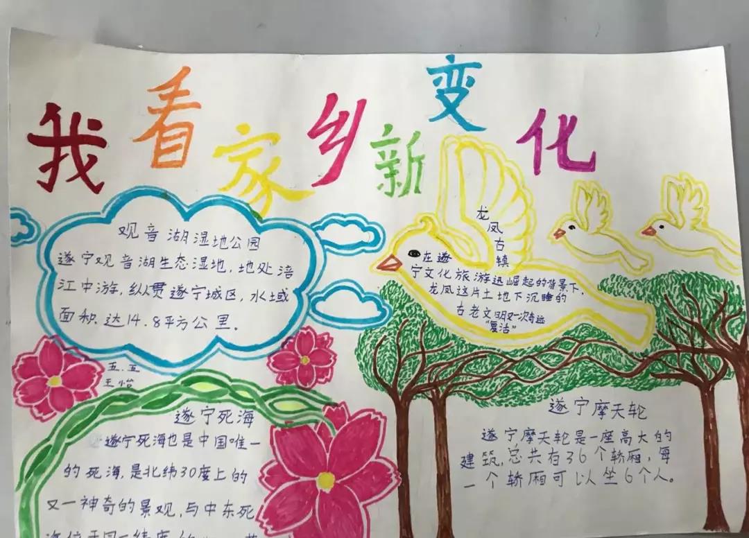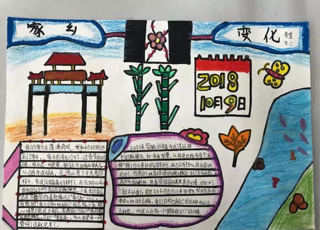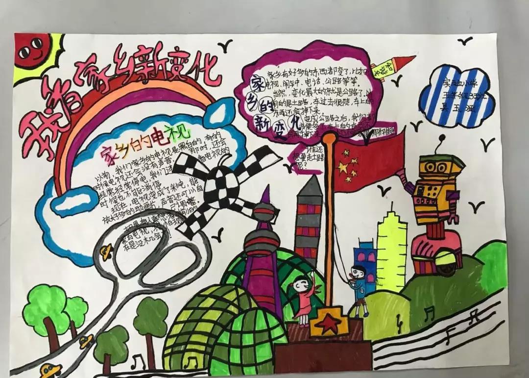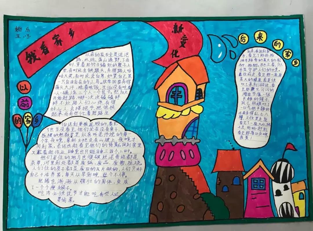 五、六年级的队员们开展了“红色基因代代传——我看家乡新变化”寻访活动。通过寻访,收集资料,队员们制作出了一幅幅精美的手抄报。