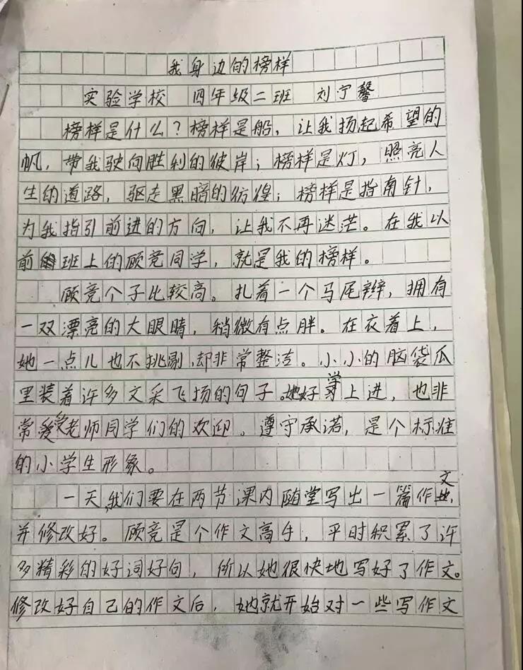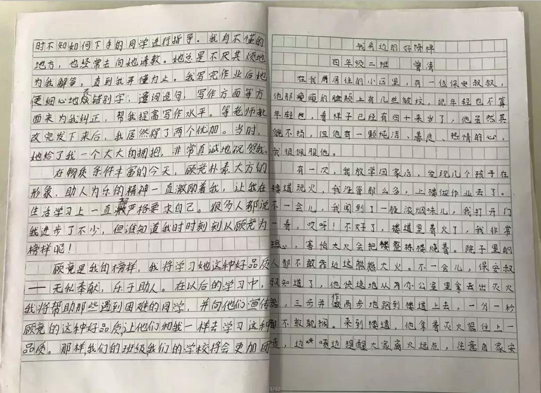 四年级各班举行了“我身边的榜样”征文活动。组织队员学习英雄人物、先进人物、美好事物,发动队员们寻找身边可亲、可信、可学的榜样。通过民主推选、榜样分享会、好队员风采展等,创新榜样教育。