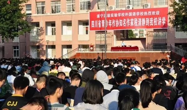 绿树阴浓秋日短,实验诗意正芬芳。10月25日下午,著名四川省作家协会作家、中国散文学会会员、中国报告文学学会会员、第十届中国作家鄂尔多斯文学奖获得者税清静来到了遂宁高级实验学校外国语学校,为学生们带来了专题讲座《文学与人生——与家乡学子谈中学生作文》。遂宁高级实验学校党总支书记、外国语学校校长罗光友,副校长张小敏,四川教育信息网主编、四川省青少年作家协会遂宁分会、四川省青少年文学院遂宁分院院长陆小沐等相关领导出席活动。初一、初二年级的同学齐聚学校操场聆听了讲座。