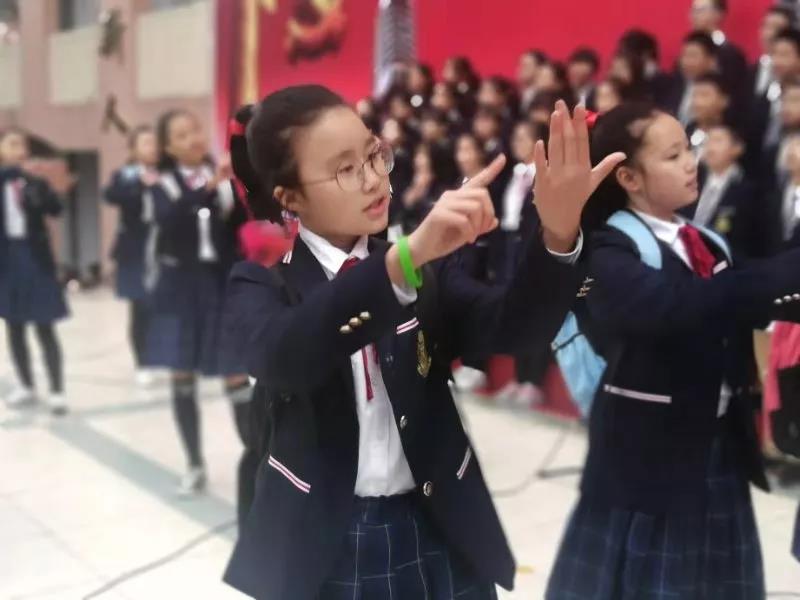 学生会文娱部的一曲《promise》热舞点燃了现场的氛围。首先上场的是初1.14班的《少年中国说》,同学们精神抖擞,歌声嘹亮,唱出了中国人民热情好客的一面,同时也传送出了中国文化的博大和包容;