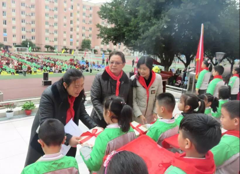 学会“感恩”是人生的第一课,孩子们怀着一颗感恩的心庄严而神圣的接受爸爸妈妈亲手为自己戴上的红领巾,接过父母赠送的小礼物,同时也送上了亲手制作的感恩卡,孩子们用深深的鞠躬、暖暖的拥抱对父母表示感激,感动的泪光、激动的情绪充盈着爸爸妈妈的内心。学校领导亲手为中队辅导员颁发聘书,每位中队辅导员都发表了热情洋溢的讲话。在大队辅导员周红霞老师的带领下,新队员面向队旗庄严宣誓。随后,同学们还表演了精彩的节目。