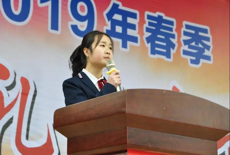“寒假在欢笑中落下帷幕,一个崭新的学期,向我们走来……”小学六年级学生代表龚昱阳表示,在新学期里,将爱学习,爱劳动,团结友爱,练就真本领,养成良好的生活习惯,用自己的双手为祖国描绘出更加灿烂的画卷。“学校给予我们的是什么?是知识,是力量,是梦想!”初三学生代表陈雨沫在发言中,表达了对学校、老师的崇高敬意,同时也表现出对于学习的热爱。表示将认真学习,奋勇拼搏,努力实现自己的人生价值。