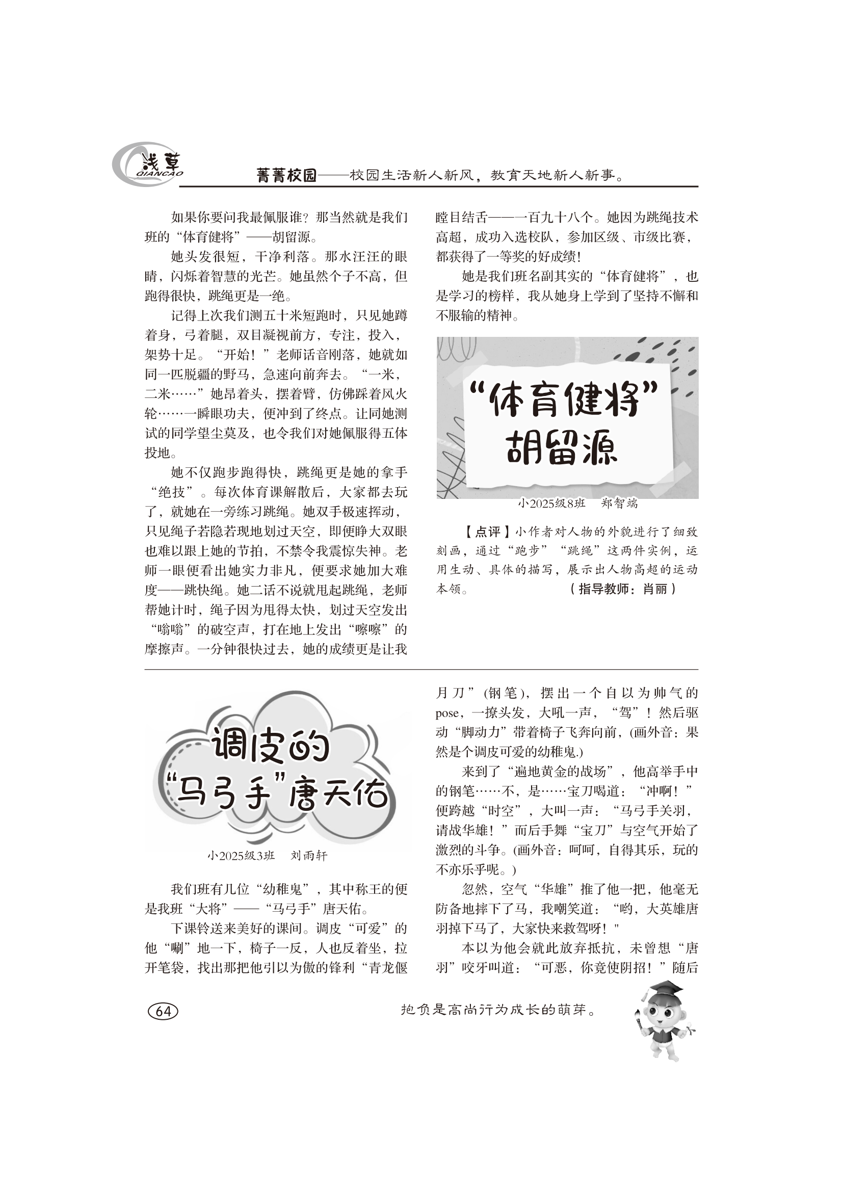 “体育健将”胡留源;调皮的“马弓手”唐天佑