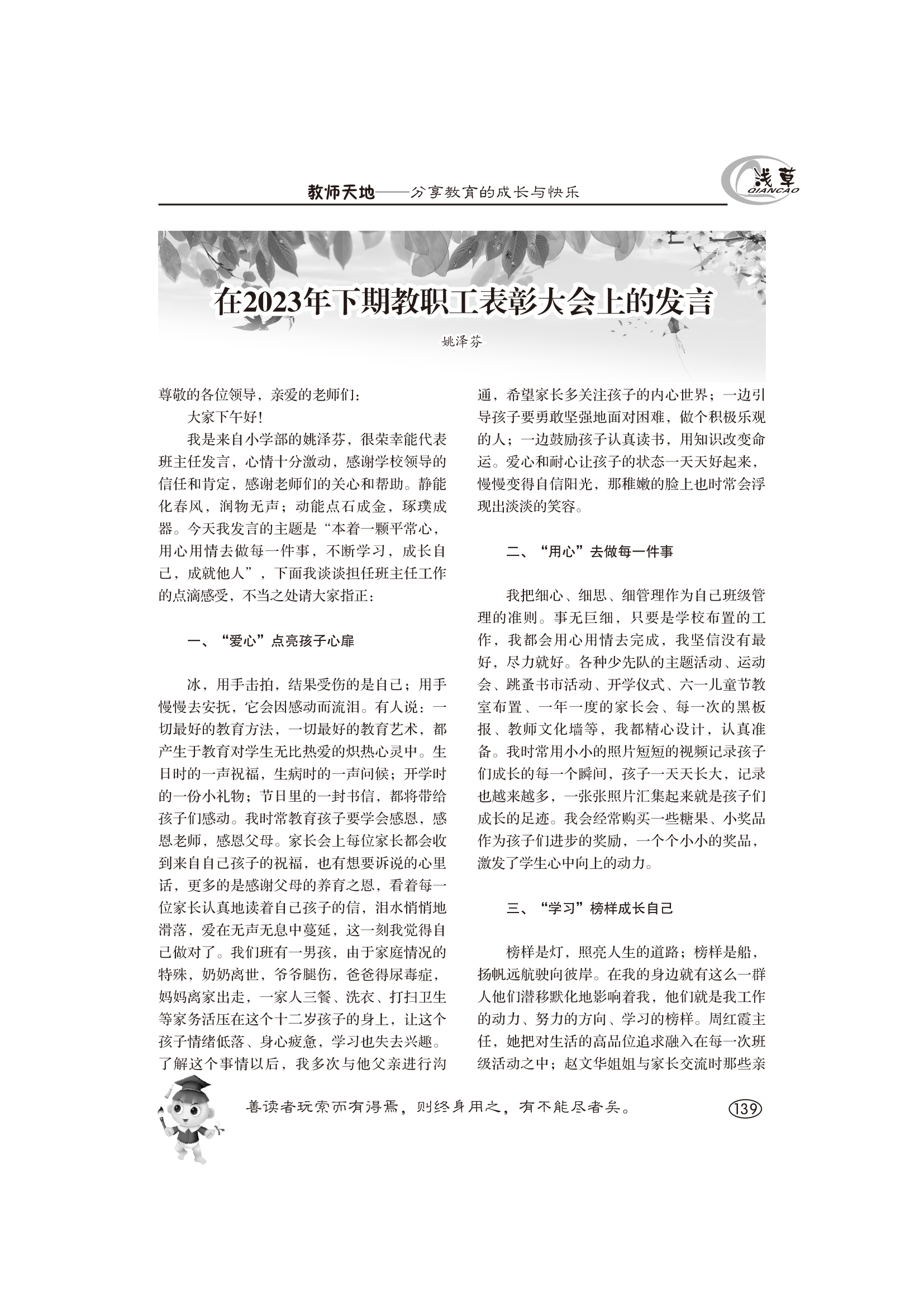 在2023年下期教职工表彰大会上的发言