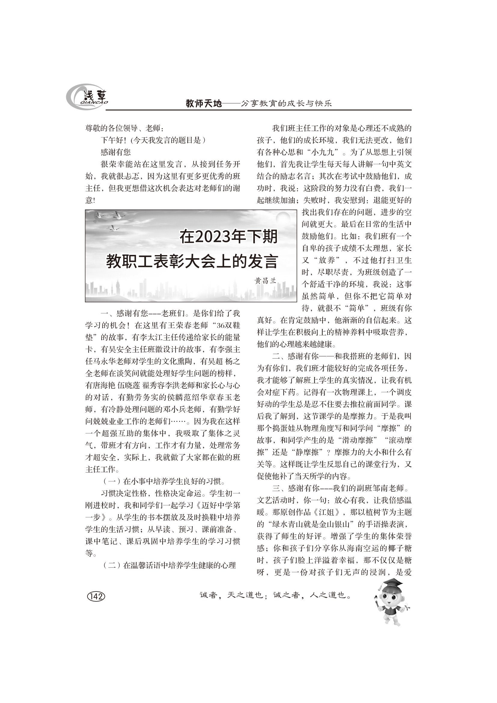 在2023年下期教职工表彰大会上的发言