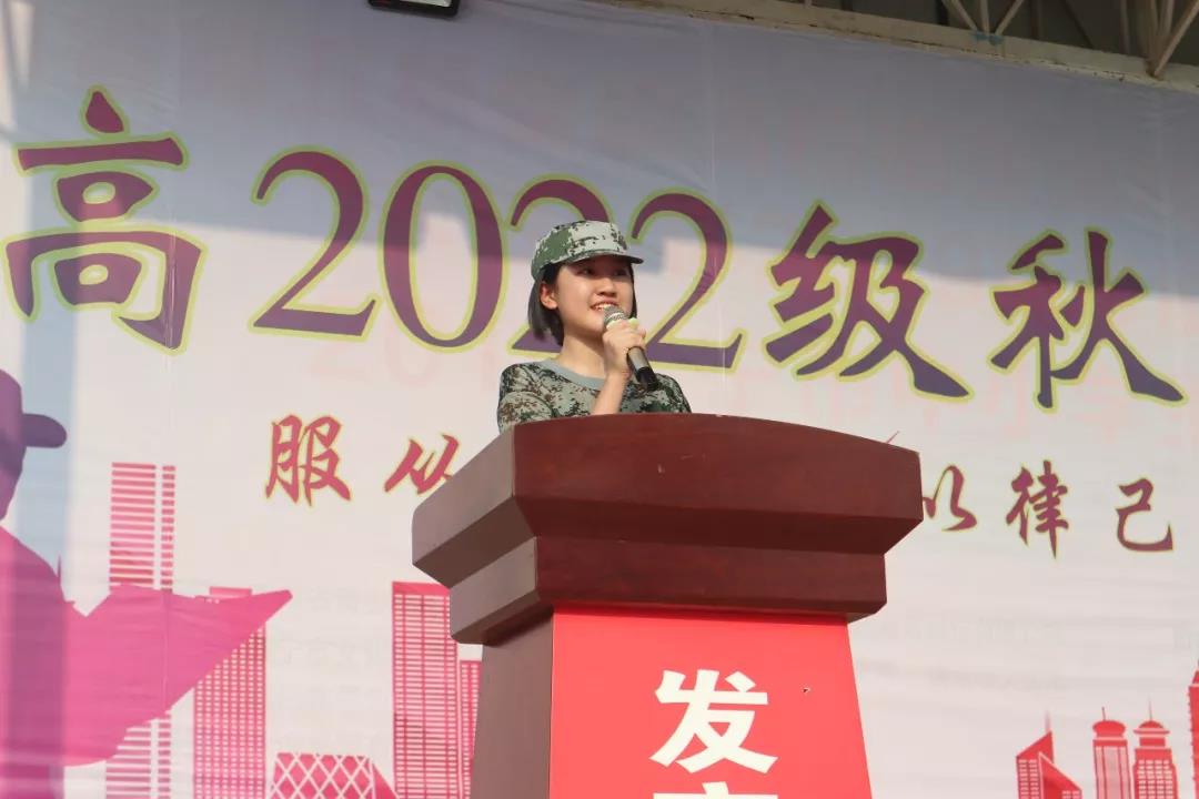 随后,陈雨沫同学代表参加军训的高2022级全体新生,表达了能够参加训练的自豪之情及圆满完成军训任务的意志和决心。