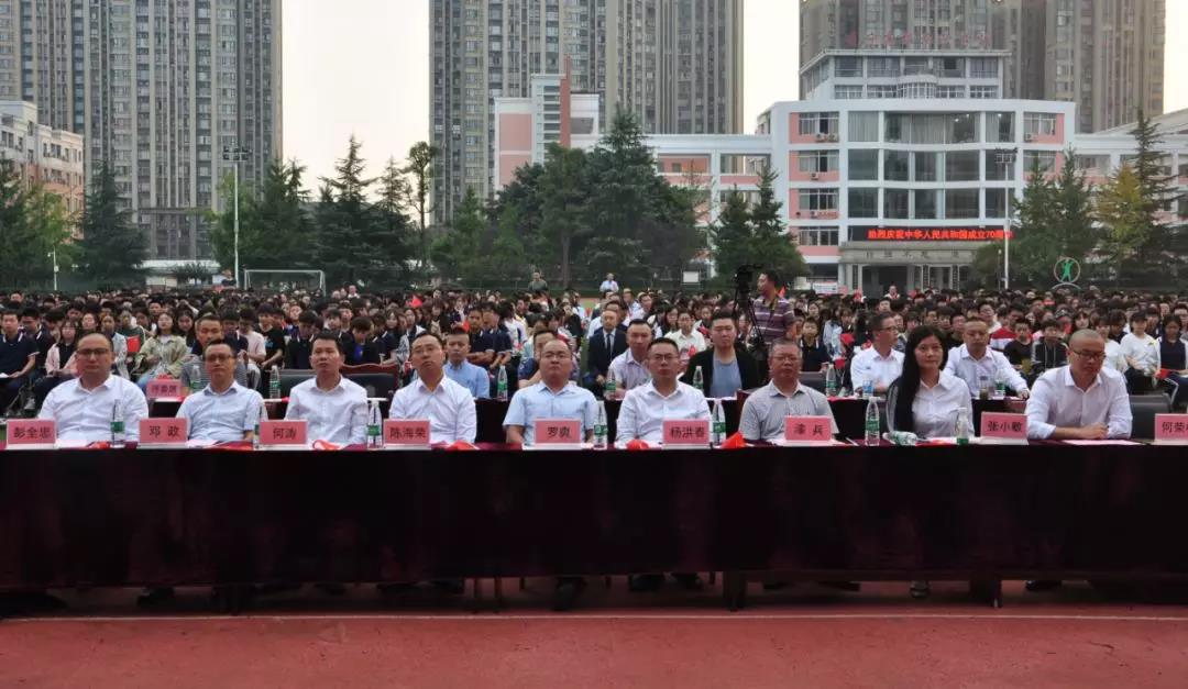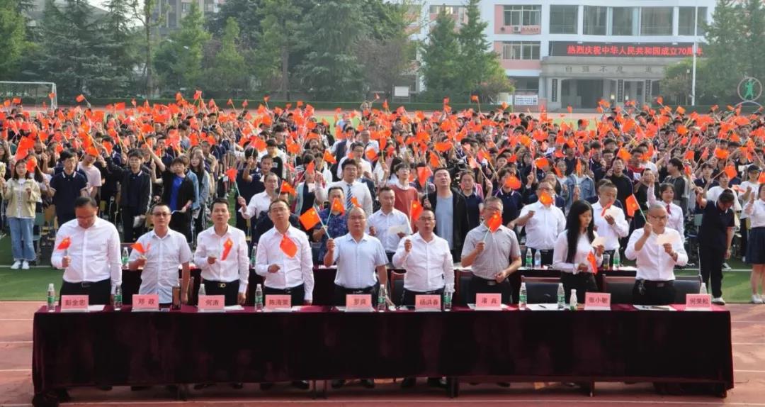 为庆祝中华人民共和国成立70周年,增强全校师生的爱国热情和民族自豪感,9月29日,遂宁高级实验学校开展了“腾飞中国 辉煌70年”系列主题教育活动,营造浓厚的节日氛围。该校高二、高一、初三年级分别通过演讲、朗诵、歌咏等比赛形式,引导学生们从小爱党、爱祖国、爱人民。