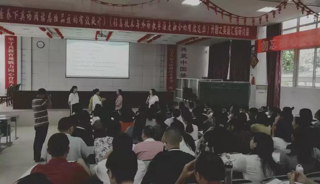 随后,学校高中英语教研组长、课题研究组核心成员唐舵老师对《信息技术与外语教学深度融合有效途径的实践性研究》进行了解读。他结合PPT展示、阐述了开题报告内容,从课题研究的背景、研究的目的与意义、课题名称的界定和解读、研究的目标等方面向与会领导进行了详细阐述和深入介绍,并对课题开题报告的实施阶段、计划与步骤、成果形式等方面进行了讲解。