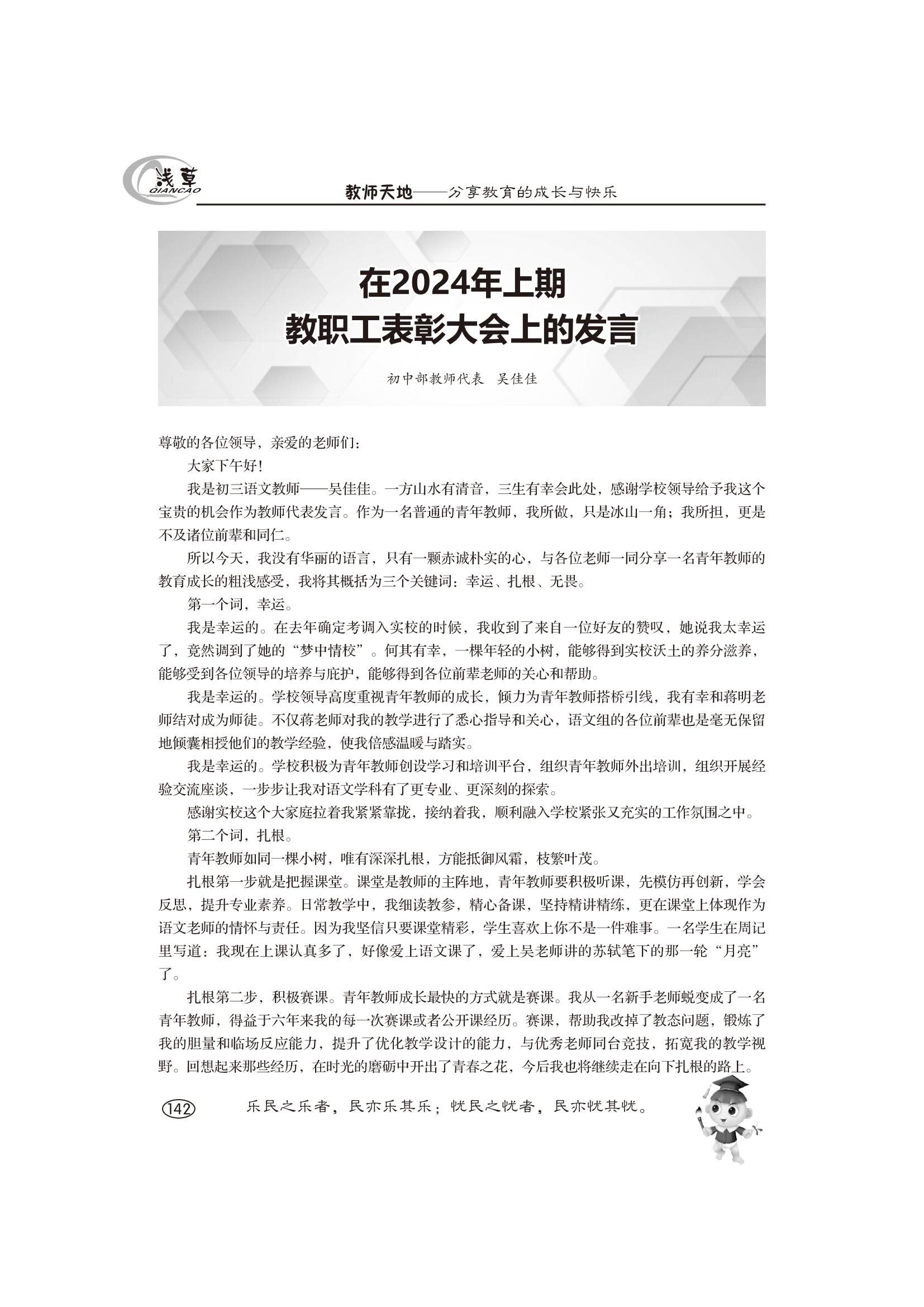 在2024年上期教职工表彰大会上的发言(吴佳佳))