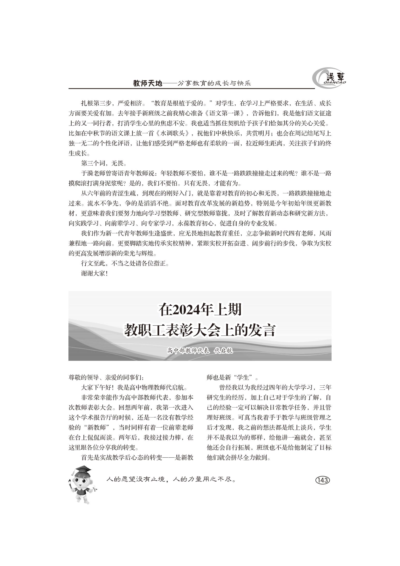 在2024年教职工表彰大会上的发言(代启航)