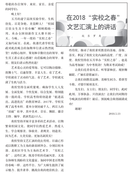 在2018“实校之春”文艺汇演上的讲话
