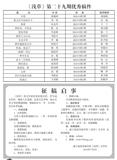 优秀稿件及征稿启事