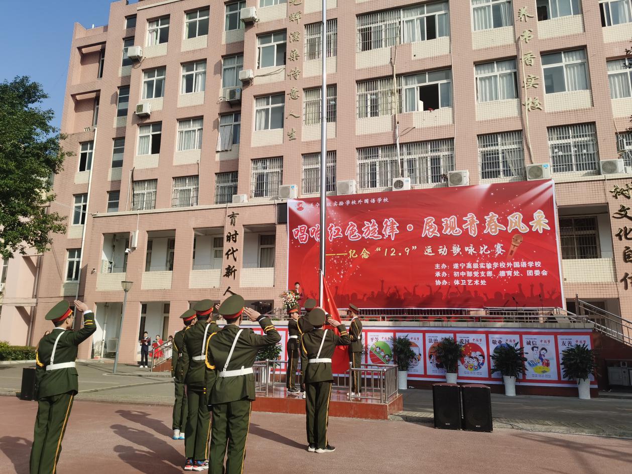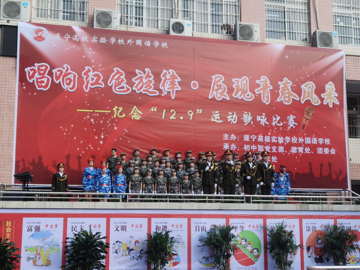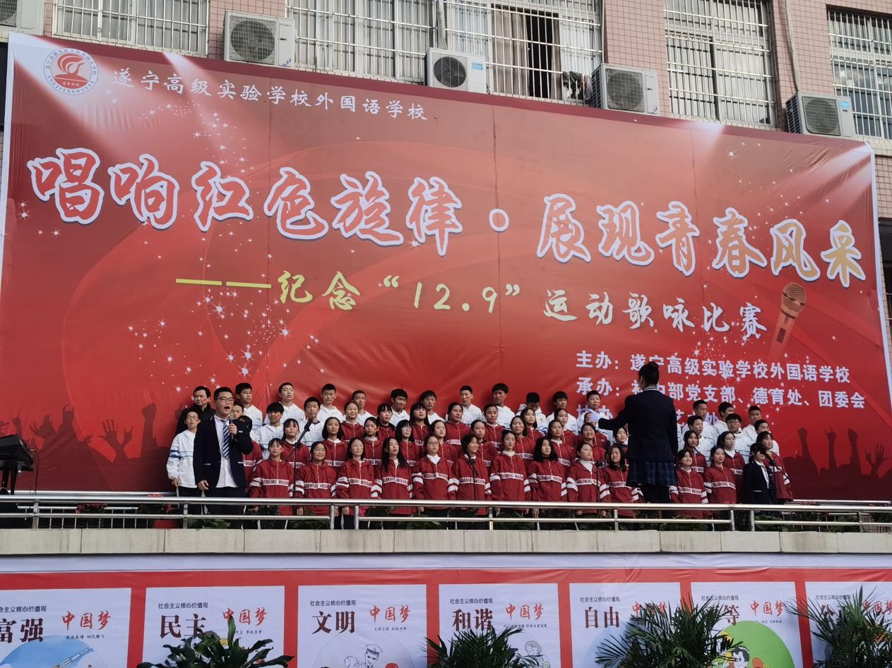 一首红歌,记录一段峥嵘岁月;一首红歌,激励一群青春学子。12月5日下午,在明媚的冬日暖阳照耀下,遂宁高级实验学校外国语学?!俺旌焐?,展现青春风采”暨纪念“12.9”运动歌咏比赛如期举行,初一初二年级32个班两千余名学生参加了活动,学校党委书记校长罗爽,党委副书记外国语学校校长杨洪春、副校长漆斌、张小敏、党委副书记邓政和部分中层领导出席了本次活动。