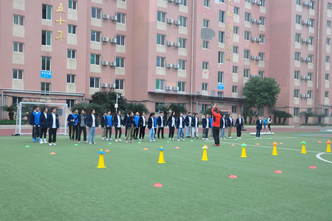 12月11日,张鑫斌老师带领同学们做热身运动。?