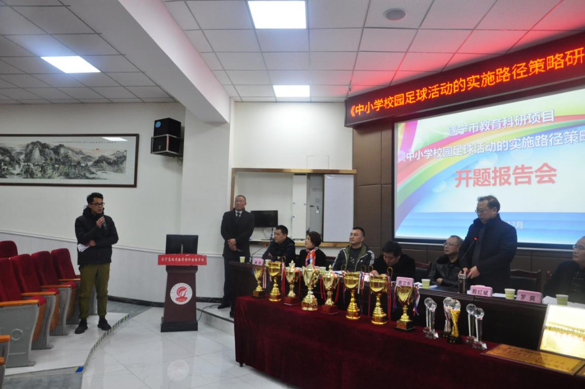 12月11日下午,遂宁市高级实验学校2019年市级规划课题——《中小学校园足球活动的实施路径策略研究》在遂宁高级实验学校学术厅举行了开题报告会。市教育和体育局领导、市教科所专家、区社事局领导、兄弟学校教育同仁、 课题组全体成员参与了报告会。