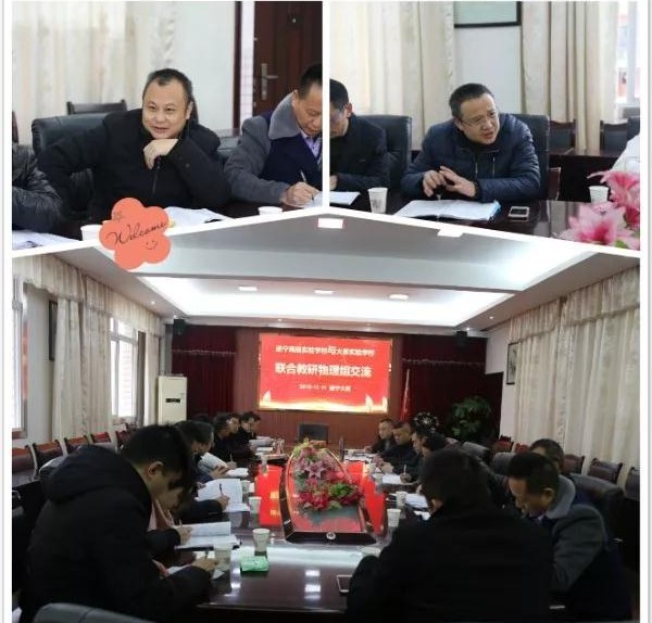 随后,两校领导与教师齐聚学校行政会议室,进行交流活动。会议由校长助理李志主持,大英实验学校校长漆英、遂实外学校校长杨洪春先后进行了热情洋溢的讲话,两位校长分别介绍了各自学校的基本情况和发展历程。希望以此为契机,建立联合教研机制,成立联合教研组,定期开展联合教研,推动学校提质增效,推进学校的协同发展,实现学校的共赢、共荣。