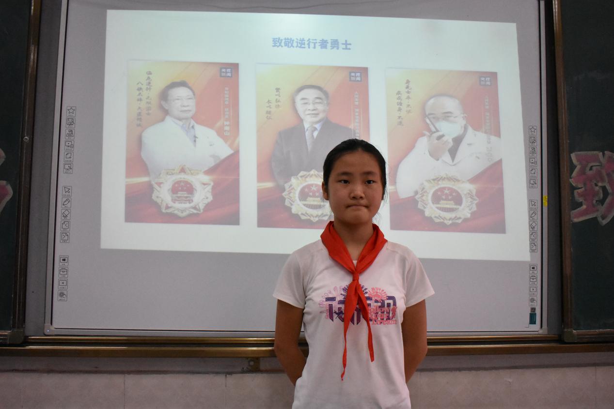 少先队员们通过观看全国抗击新冠肺炎疫情表彰大会、回顾抗疫英雄事迹、激情演讲等方式走近英雄、了解英雄、向英雄致敬。