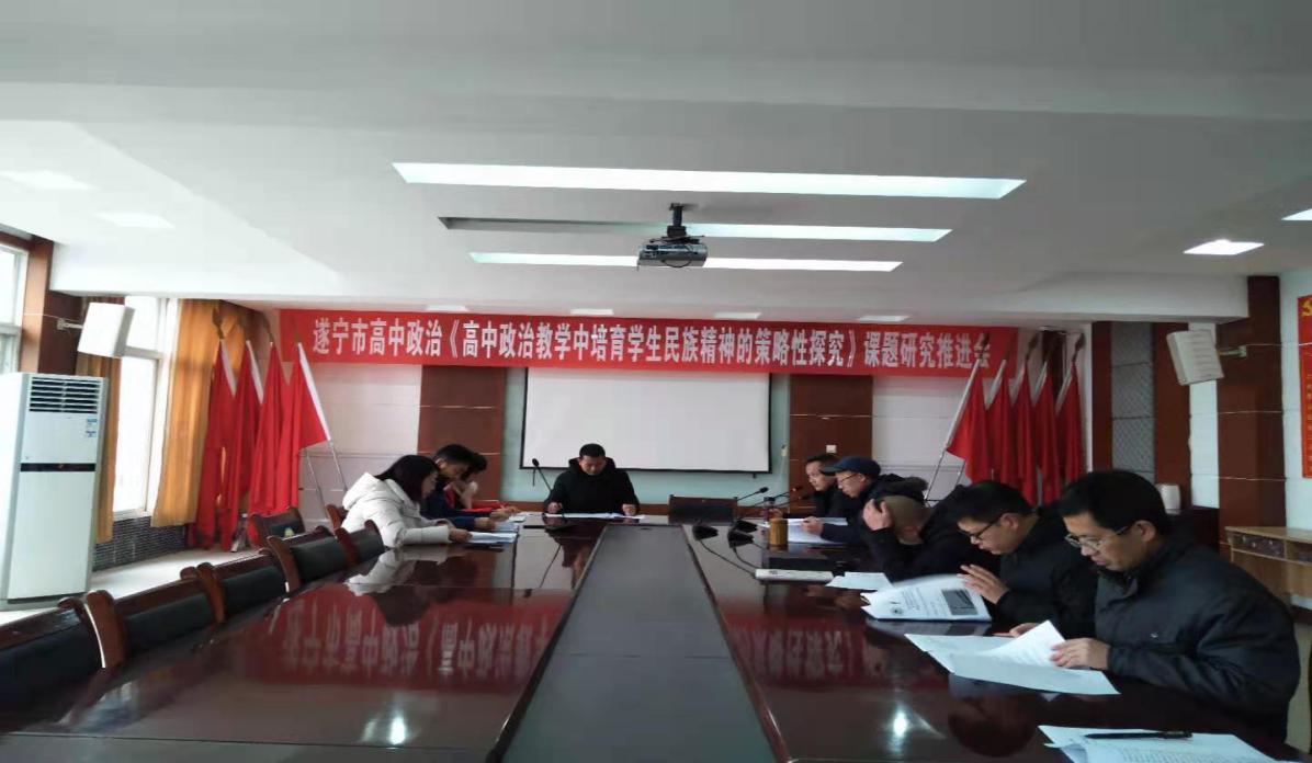 2021年1月4日上午,遂宁高级实验学校遂宁市市级重点课题《高中政治教学中培育学生民族精神的策略的实践性探究》研讨推进会在学校综合楼六楼会议室成功召开。遂宁高级实验学校副校长何涛、课题组全体成员及其他部分学科课题组人员参加了本次会议。